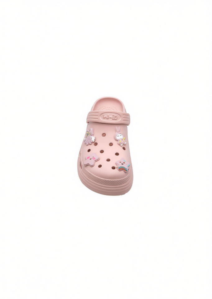 รองเท้าแตะเด็กสีชมพูประดับเข็มกลัดลายการ์ตูน ไซส์ 20 หัวมน รองเท้าฤดูร้อนทำจากวัสดุ EVA
