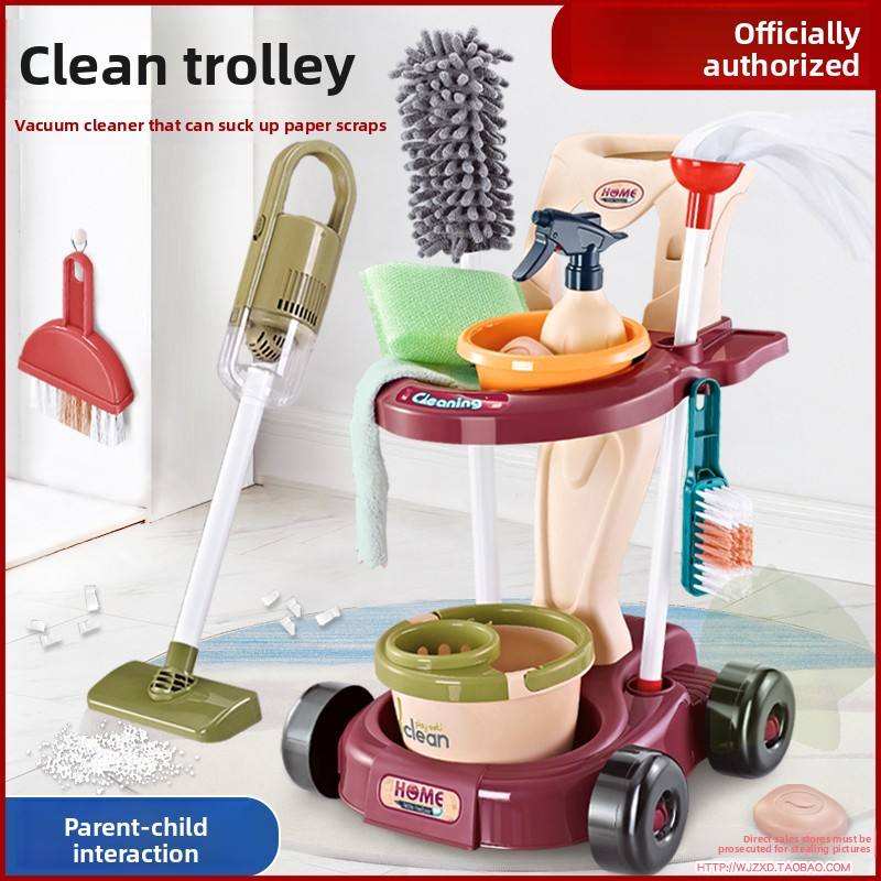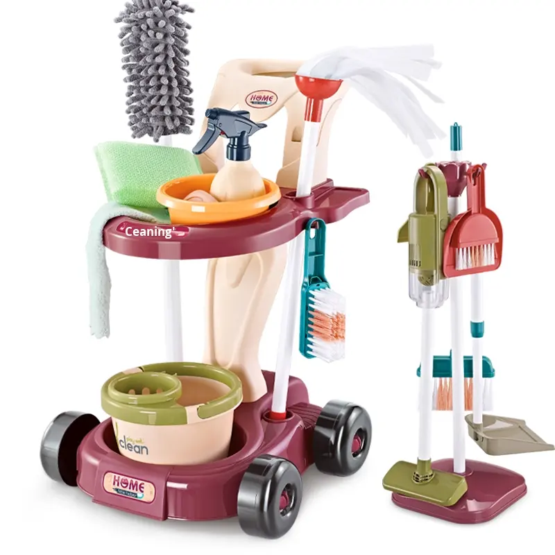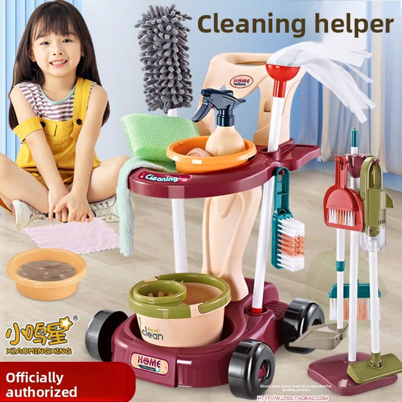 ชุดไม้กวาดและที่ตักขยะพลาสติกสำหรับเด็กของเล่นเลียนแบบสำหรับทำความสะอาดทำความสะอาดบ้านสำหรับเด็กผู้ชายและเด็กผู้หญิง