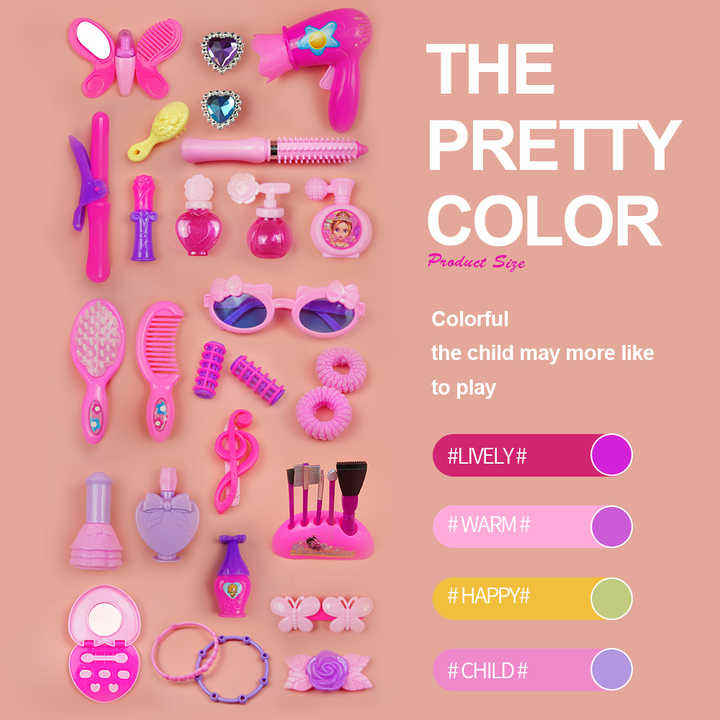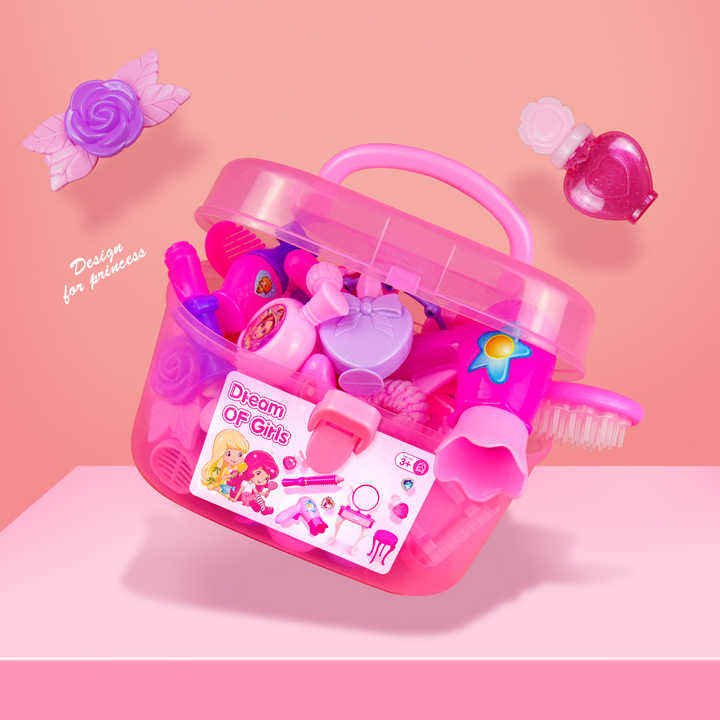 ชุดเครื่องสำอางเลียนแบบการเล่นก่อนวัยเรียนสำหรับเด็กกล่องเก็บของไว้ทำผมของเล่นจำลองอุปกรณ์เสริมสวยสำหรับเด็กผู้หญิง