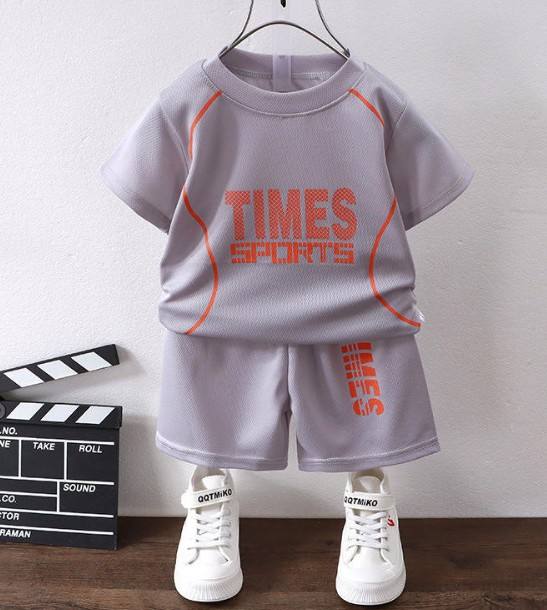 ชุดสูทแขนสั้นสำหรับเด็กผู้ชายชุดเสื้อผ้าสองชิ้นแห้งเร็วชุดเสื้อผ้าเด็กผู้ชาย