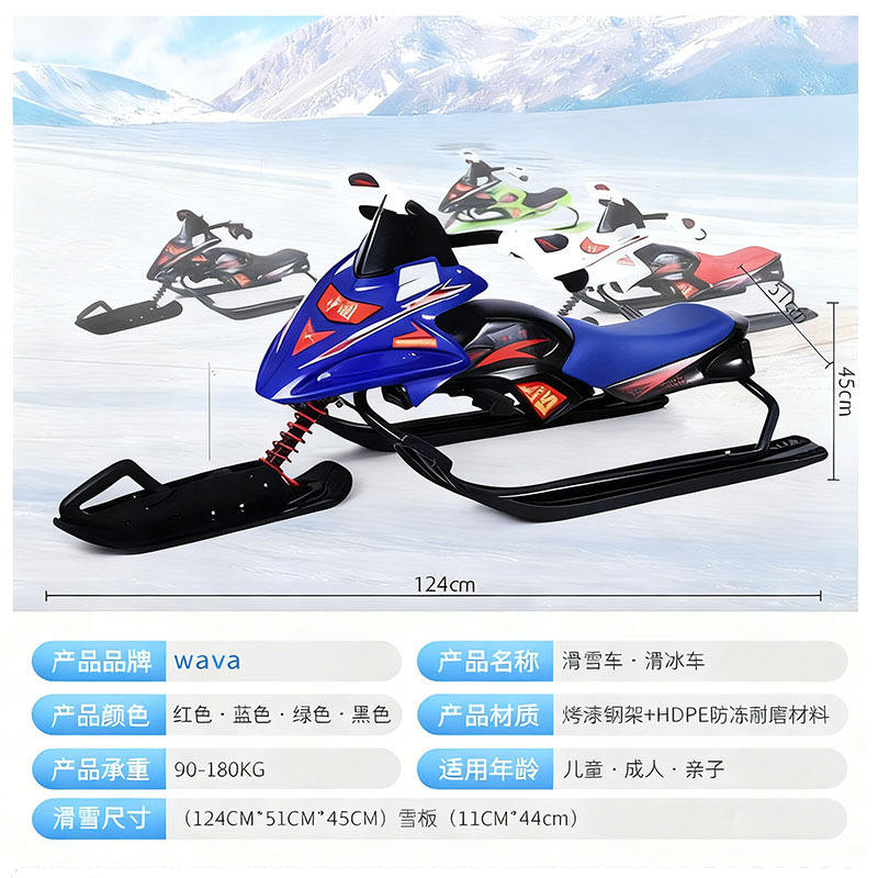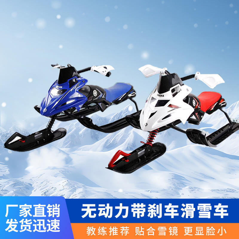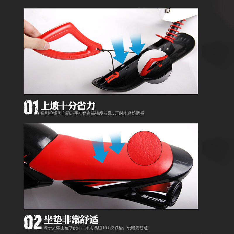 รถเลื่อนหิมะสำหรับเด็กแบบมอเตอร์ไซค์ พร้อมระบบกันสะเทือนสปริงสีแดง ทนทานสำหรับการเล่นกลางแจ้งในฤดูหนาวสำหรับเด็ก