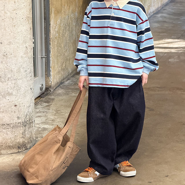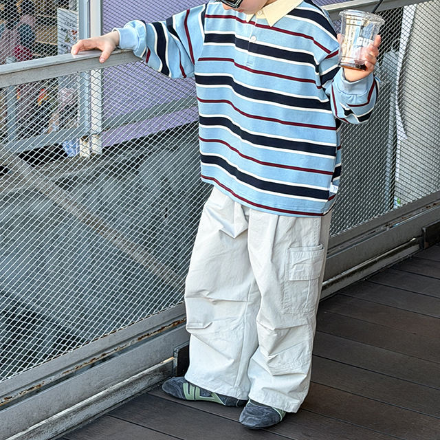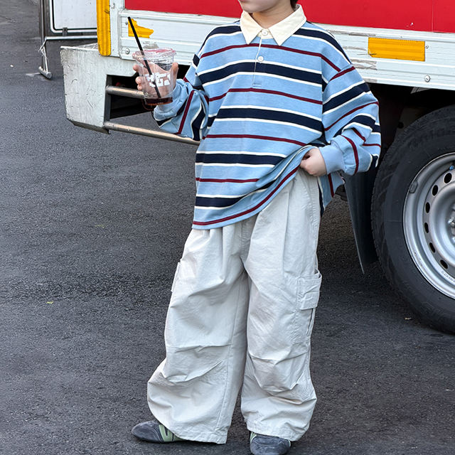 ชุดเด็กฤดูใบไม้ผลิ เสื้อโปโลลายทางเด็กผู้ชาย 2026 ฤดูใบไม้ผลิสไตล์ใหม่ เสื้อแขนยาวลำลองสำหรับเด็กโต