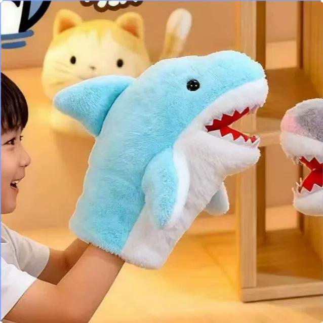 ตุ๊กตาฉลามน้อยหิวโหยสำหรับเด็ก สามารถเปิดปากได้ ตุ๊กตาหุ่นมือ ตุ๊กตาผ้าพลัฌ