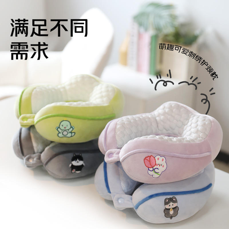 หมอนรองคอรูปตัวยูสำหรับเด็ก 28x26x14 ซม. ลายกระต่ายสีม่วง นุ่มสบายสำหรับเด็กและเด็กวัยหัดเดิน