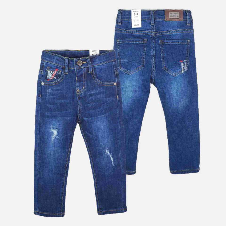 กางเกงยีนส์ปักลายอเนกประสงค์สำหรับเด็ก กางเกงขายาวสีน้ำเงินสำหรับเด็กผู้ชาย กางเกงยีนส์ฤดูใบไม้ร่วงฤดูใบไม้ผลิ