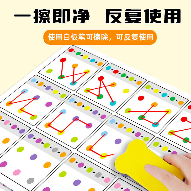 การ์ดฝึกการติดตามภาพสำหรับเด็ก ขนาด 260x185 มม. กระดาษเสริมสร้างสมาธิ เชื่อมโยงจุดต่างๆ แฟลชการ์ดสำหรับเด็กเล็ก