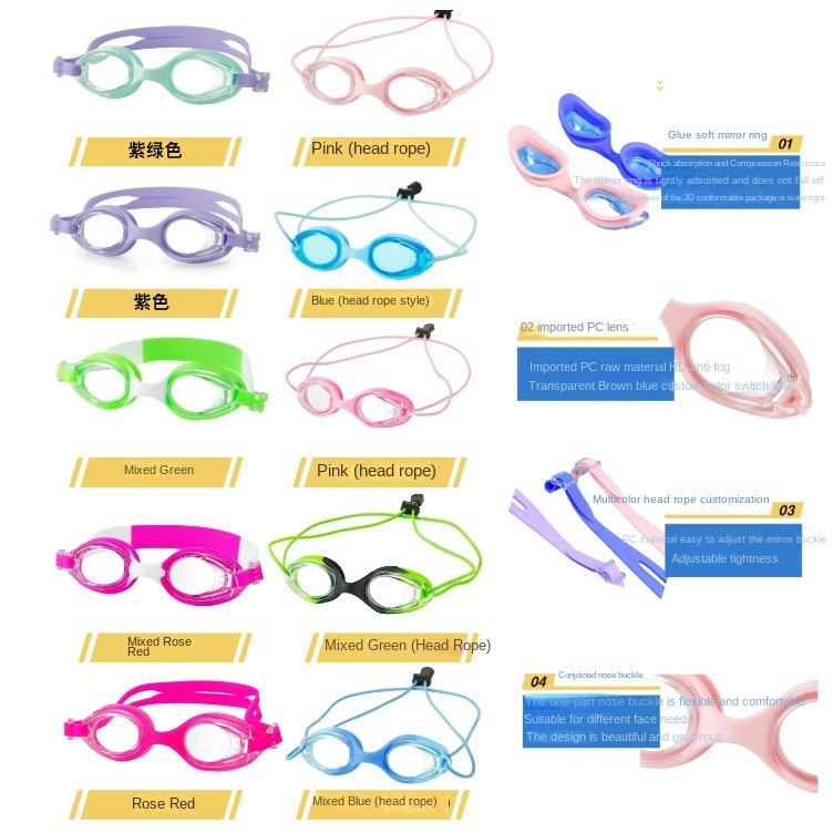 แว่นตาว่ายน้ำกันน้ำสำหรับเด็กพร้อมที่คาดผมอะไหล่อุปกรณ์ป้องกันหูและยางรัดผม