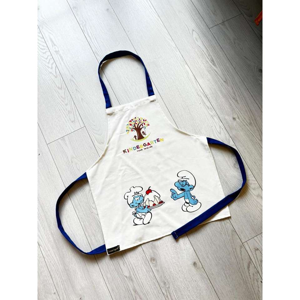 ผ้ากันเปื้อนสีขาวสำหรับเด็กพร้อมดีไซน์สเมิร์ฟสำหรับการทำอาหารและการอบการผจญภัย