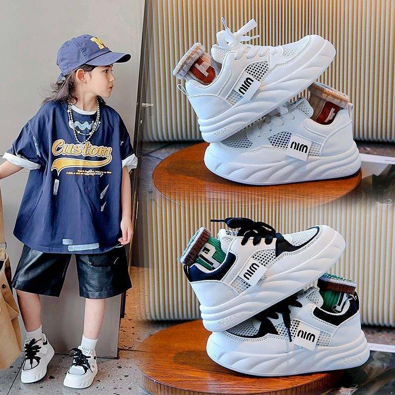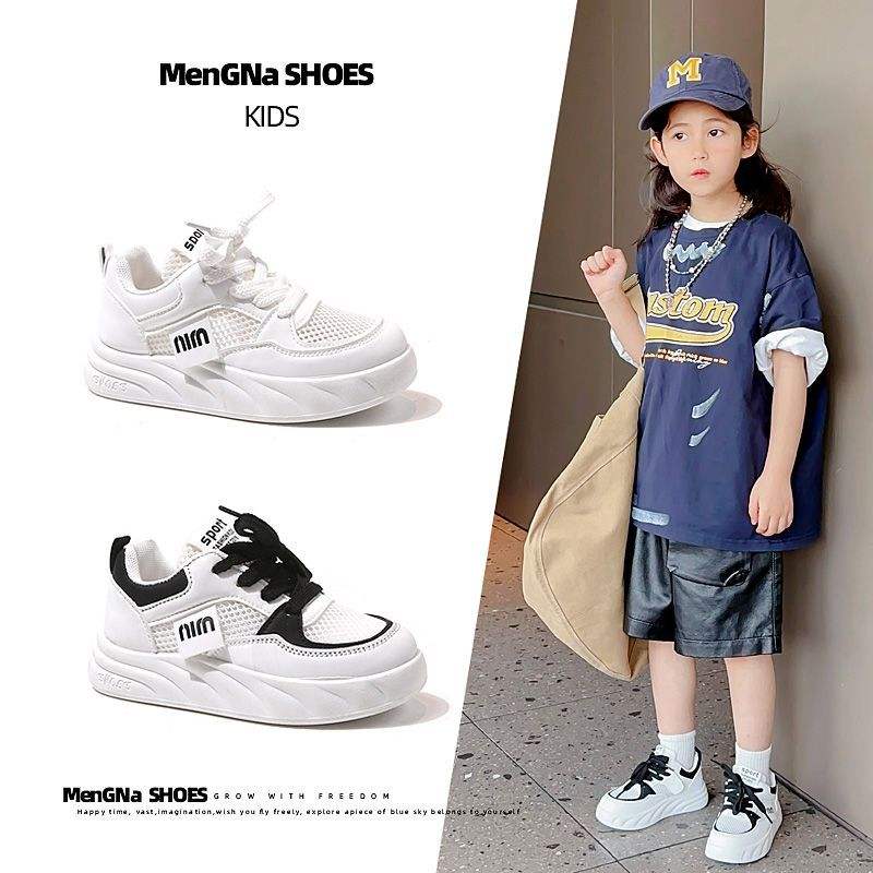 รองเท้าสีขาวสำหรับเด็ก2024ฤดูใบไม้ผลิและฤดูใบไม้ร่วงรองเท้ากีฬาพื้นหนาอเนกประสงค์สำหรับเด็กผู้ชายเด็กผู้หญิงรองเท้าลำลองกันลื่นแบบใหม่