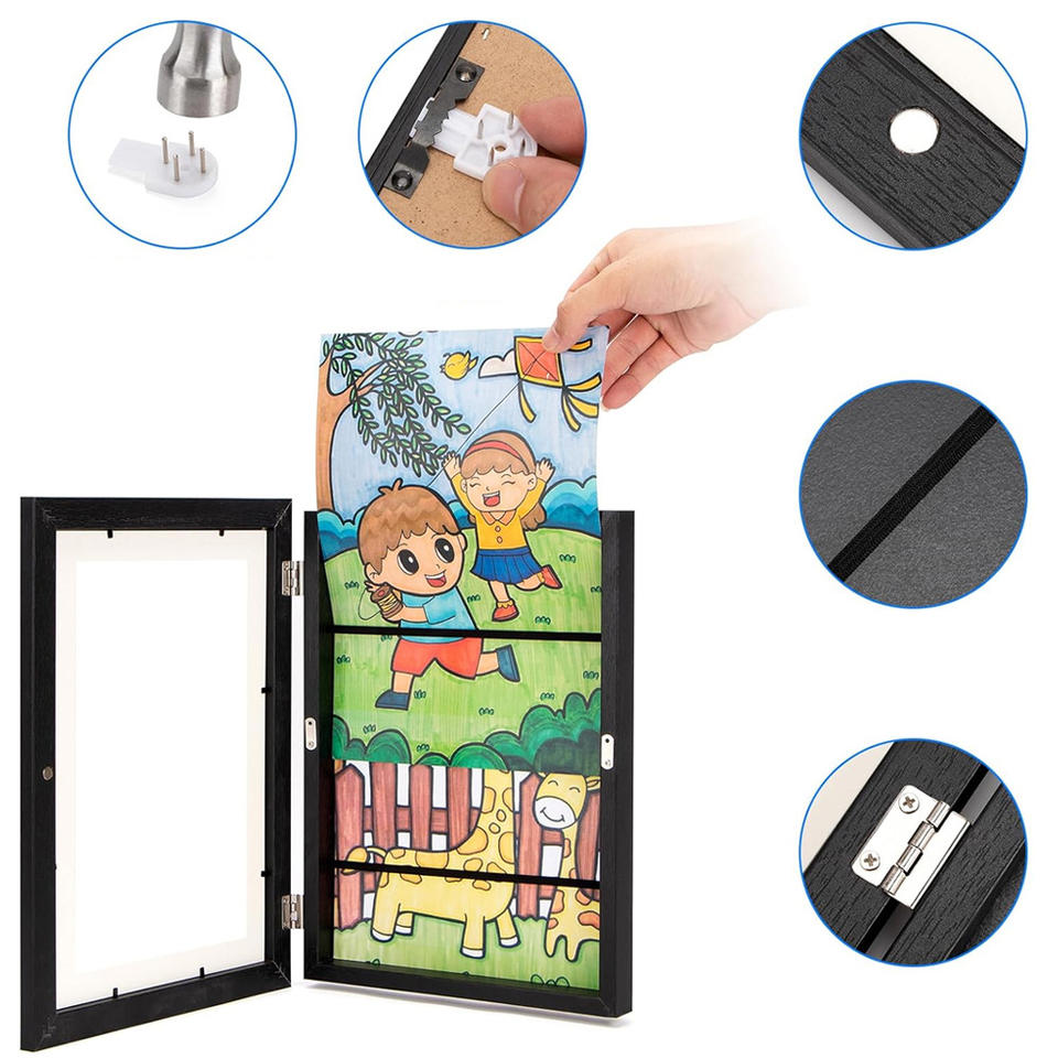 กรอบรูปศิลปะสำหรับเด็ก สีดำ รูปทรงสี่เหลี่ยมผืนผ้า แบบเลื่อนเปิดได้ ติดผนังได้ สำหรับห้องนั่งเล่น ห้องนอน ห้องทำงาน ทางเข้าบ้าน