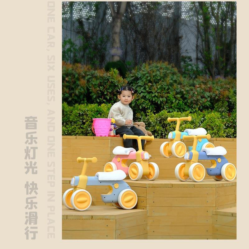 จักรยานทรงตัวสำหรับเด็ก รถสี่ล้อแบบมีไฟ LED ล้อขนาด 12 นิ้ว สำหรับเด็กอายุ 2-3 ปี ของเล่นเด็กชายและเด็กหญิง