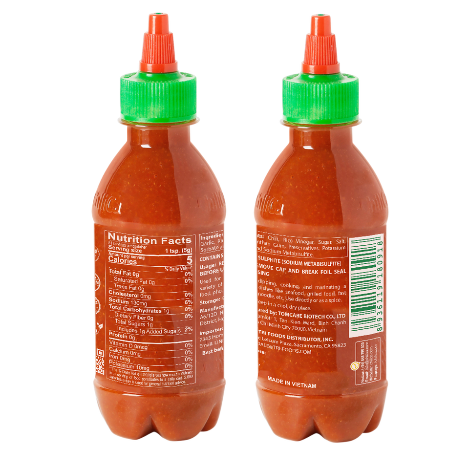 ส่วนผสม:Chili (76.8%), garlic, rice vinegar, salt, sugar