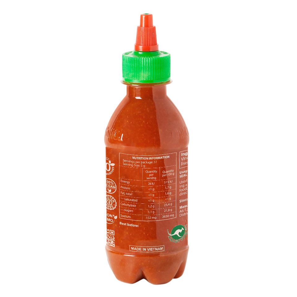 Chili (76.8%), garlic, rice vinegar, salt, sugar