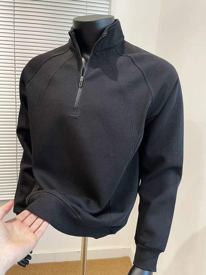 เสื้อสเวตเชิ้ตผู้ชายคอตั้ง ซิปครึ่งตัว สไตล์ลำลอง สำหรับฤดูใบไม้ร่วงและฤดูหนาว ผลิตในจีน ราคาโรงงาน รับผลิตแบบ OEM พร้อมปักโลโก้ตามสั่ง