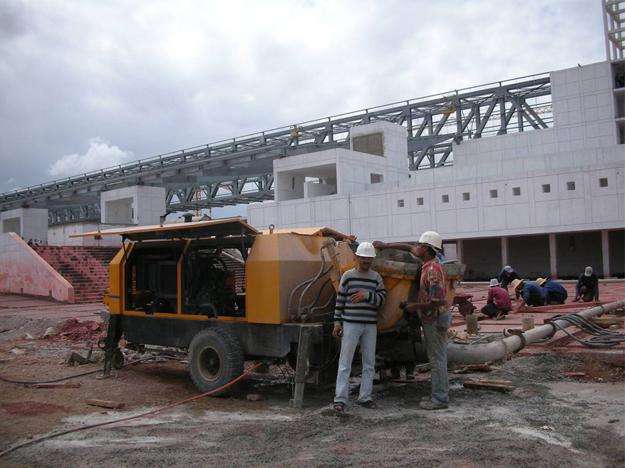 ปั๊มคอนกรีตติดรถพ่วง ยี่ห้อจีน รุ่น HBT6006A-5 ขนาด 70 ลูกบาศก์เมตร/ชั่วโมง