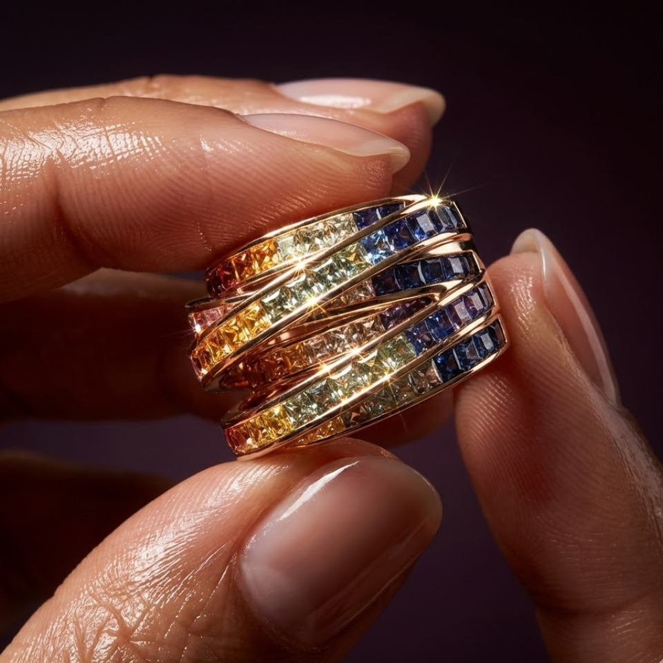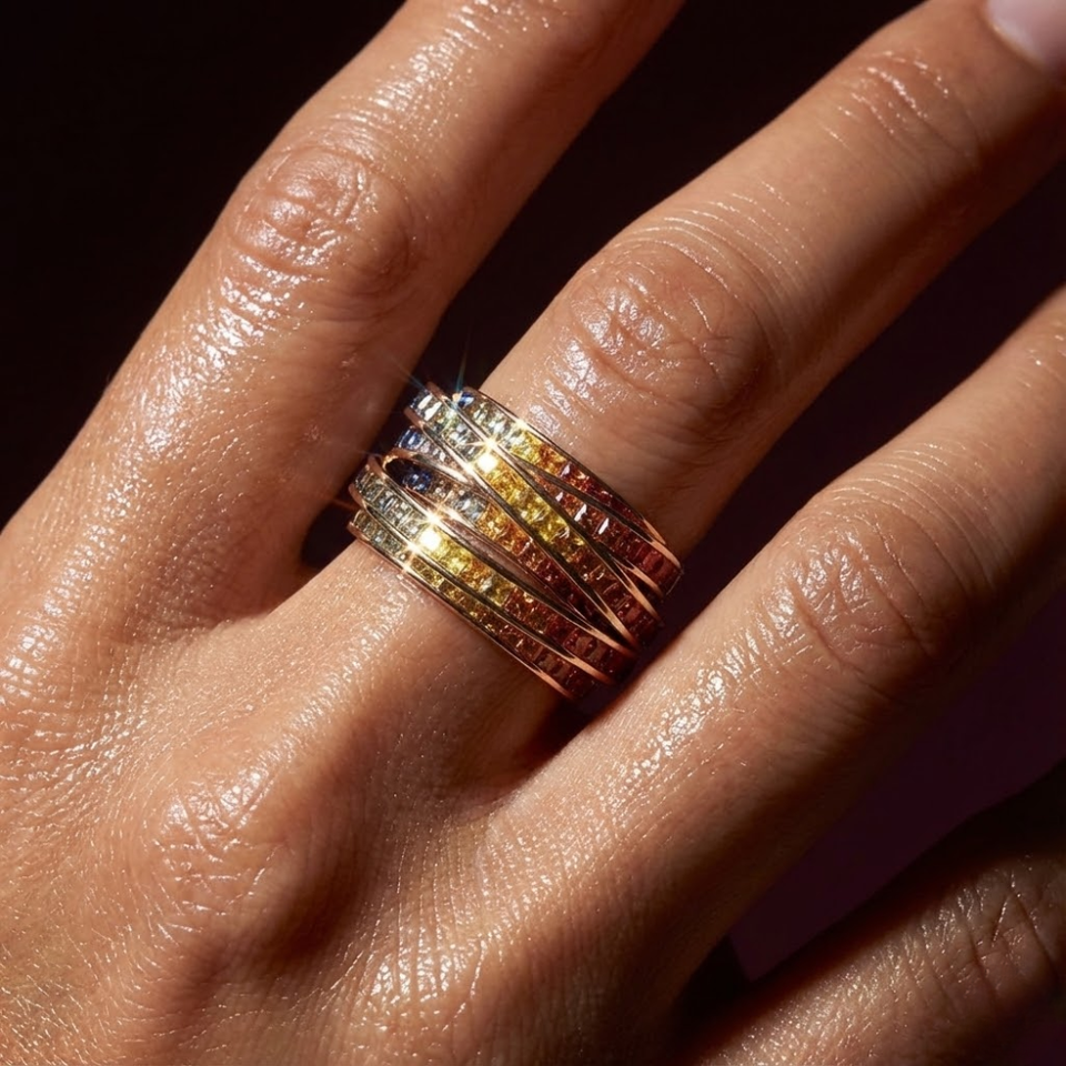 เครื่องประดับจากโรงงานจีนโดยตรงดีไซน์ล่าสุดคุณภาพสูง18K แข็งสีทองเจ้าหญิงสีฟ้าตัดแซฟไฟร์สีฟ้ารายละเอียดงานแต่งงาน