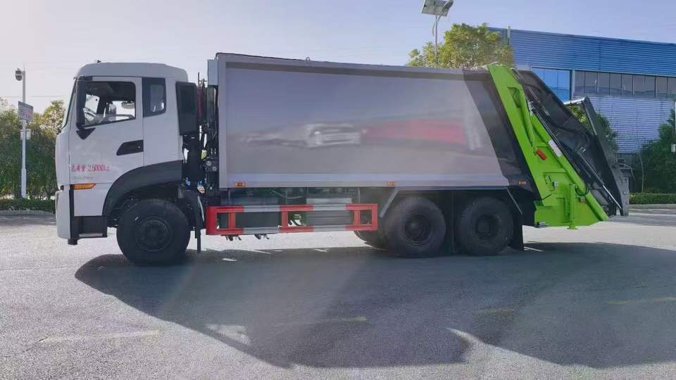 รถบรรทุกเก็บขยะอัดแบบแมนนวล 6x4 ขนาด 25 ลูกบาศก์เมตร ยี่ห้อจีนตงเฟิงเทียนหลง พร้อมเครื่องยนต์เว่ยไช่มาตรฐานไอเสียยูโร 5