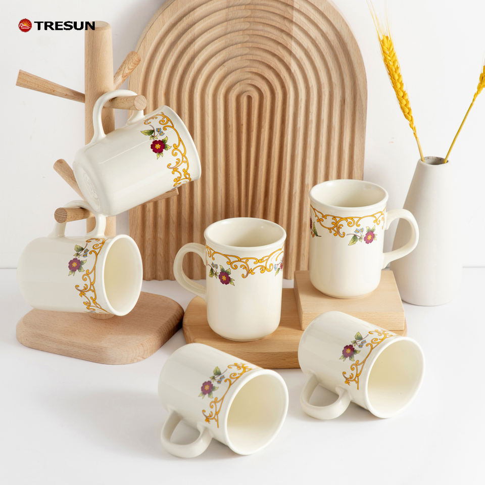 ภาชนะใส่เครื่องดื่มจีนราคาถูกพร้อมส่งแก้วเซรามิกลายดอกไม้สีชมพูลายดอกไม้ตามสั่ง