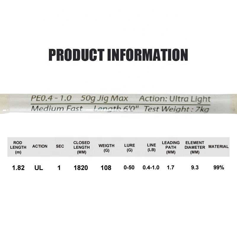 คันเบ็ดจิ๊กกิ้งขนาดเล็ก1.82ม.,คันเบ็ดจิ๊กกิ้งช้าสำหรับตกปลา1ท่อนน้ำเค็มคันเบ็ดสปินนิ่งโรงงานในจีน