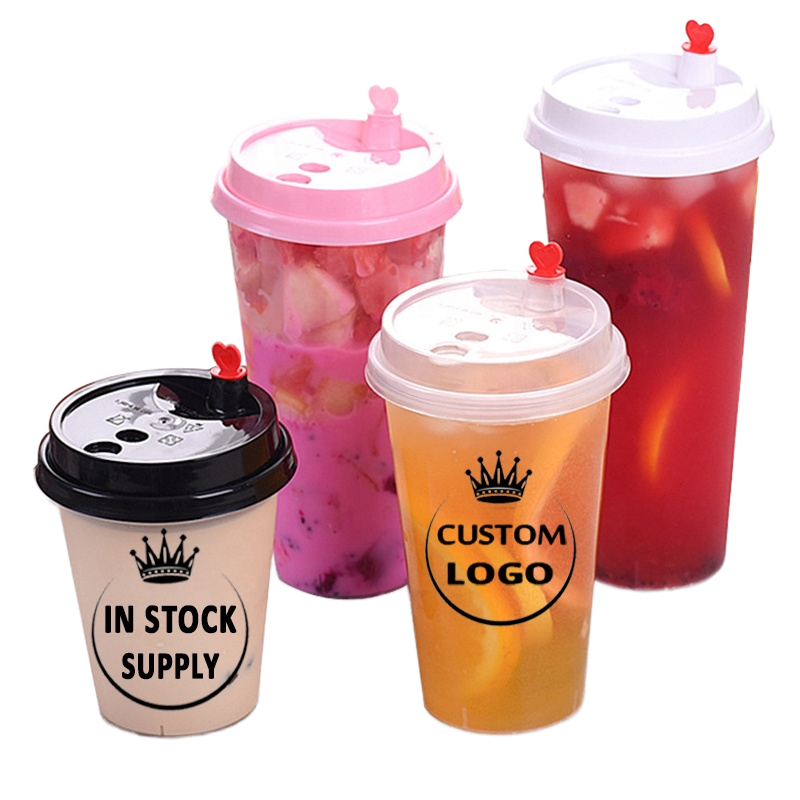 ถ้วยบับเบิ้ลพลาสติกหนาทรงตัวยูแก้วบับเบิ้ลขนาด16ออนซ์24ออนซ์ถ้วยน้ำปั่นพิมพ์ลายออกแบบได้ตามต้องการผลิตจากโรงงานจีน