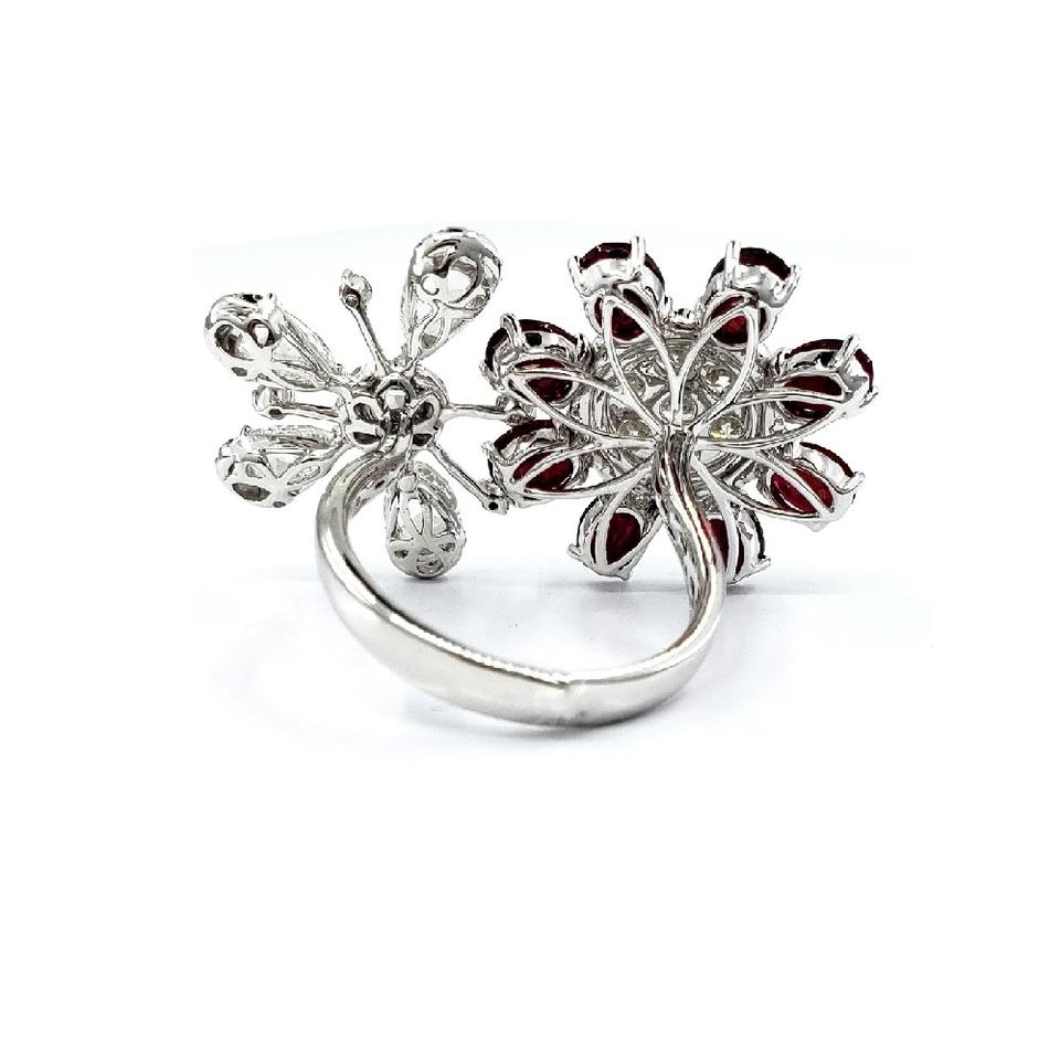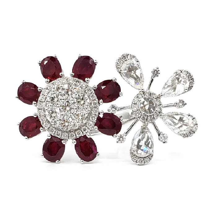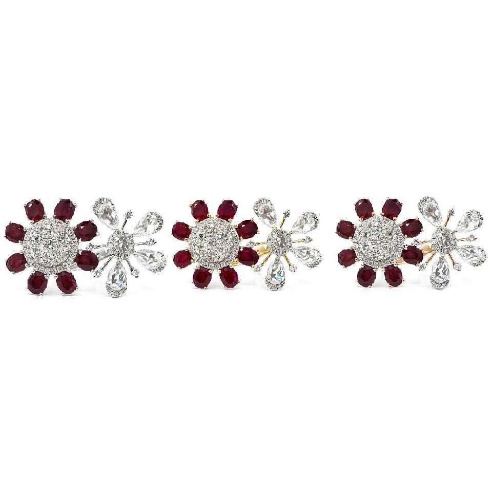 แหวนแต่งงานแบบง่ามประดับเพชรธรรมชาติสีขาวทอง18K ประดับเพชรและทับทิมตัดดอกกุหลาบโรงงานจีน