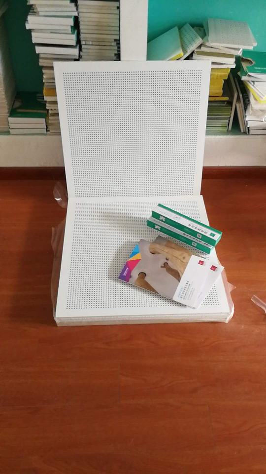 แผ่นฝ้าเพดานยิปซัมจากโรงงานจีน ขนาด 2x2 คุณภาพดี ดูดซับเสียง สีขาว แบบเจาะรู ป้องกันไฟไหม้ระดับ A2 พร้อมแผ่นกันเสียง