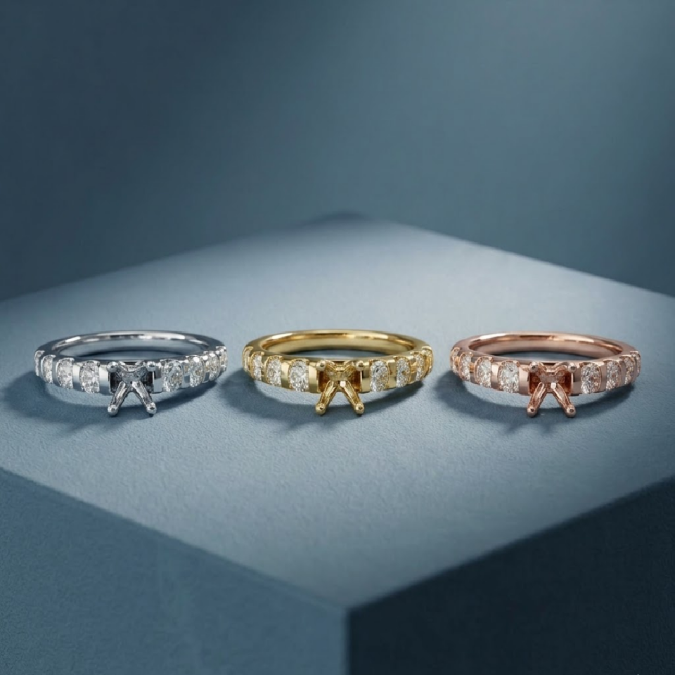 เครื่องประดับจากโรงงานจีนปลายสูง18K แข็งสีทองแท้ทรงเพชรกึ่งเรียบติดตั้งง่ายสำหรับงานแต่งงานงานหมั้น