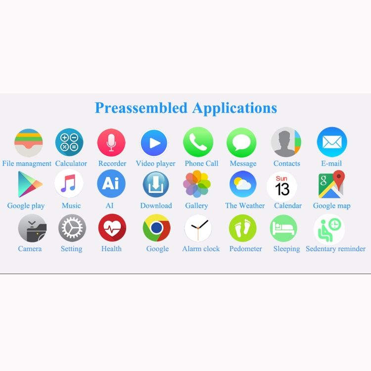 สัปดาห์, เดือน, การแจ้งเตือนการโทร, อัตราการเต้นหัวใจติดตาม, เลือดออกซิเจน Monitor, GPS นำทาง, สนับสนุน WIFI, Google Play, อินเทอร์เน็ต
