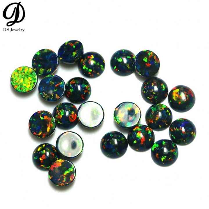 หินโอปอลสังเคราะห์ทรงหลังเบี้ยทรงกลม OP35โอปอลสีดำผลิตจากโรงงานจีน