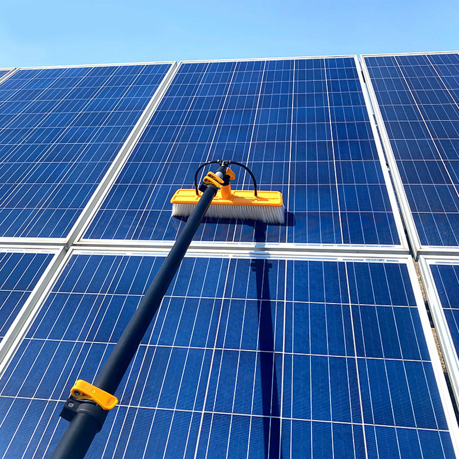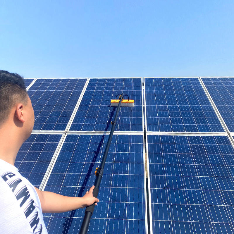 เครื่องมือทำความสะอาดหลังคาแบบถือถือได้แปรงทำความสะอาดแผงโซลาร์เซลล์สำหรับระบบสุริยะ
