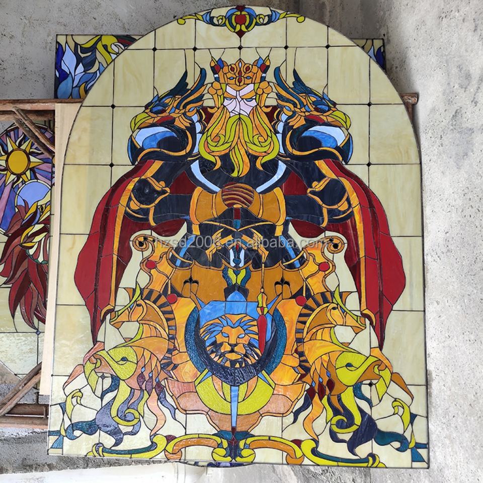โรงงานจีนผลิตกระจกสีลายเทวดาสไตล์ยุโรปขนาดใหญ่สำหรับตกแต่งหน้าต่างโบสถ์ โครงสร้างแข็งแรง