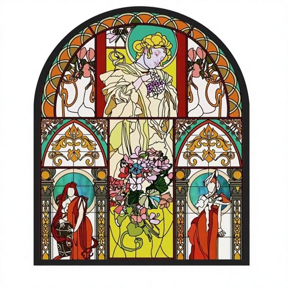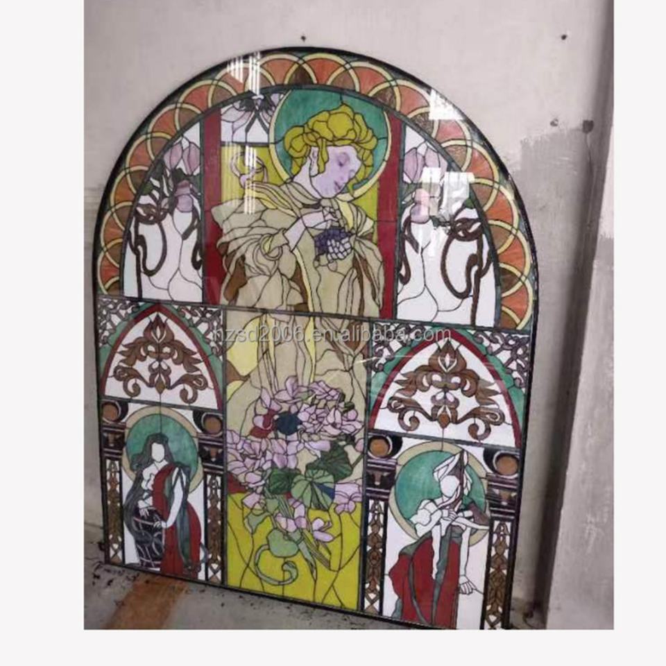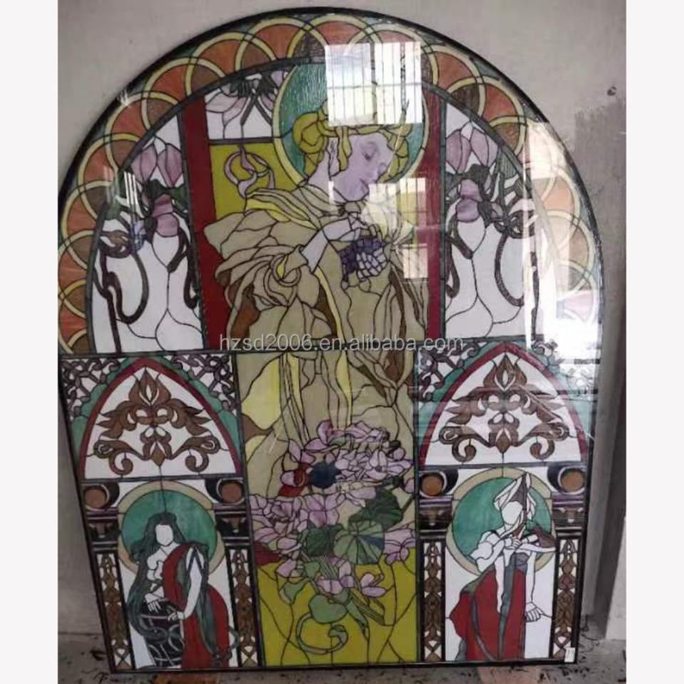 โรงงานจีนจัดหาแผงกระจกสีตกแต่งลายเทวดาสไตล์ยุโรปขนาดใหญ่ ดีไซน์สวยงาม ทนทาน ทำด้วยมือ