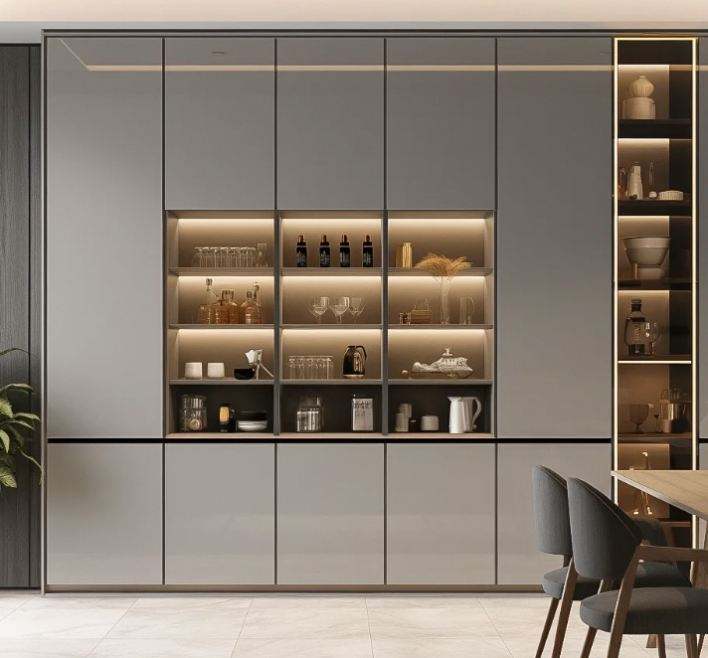 ตู้เสื้อผ้าห้องนั่งเล่นดีไซน์เรียบง่ายทันสมัยจากโรงงานจีน พร้อมแผงไม้ปรับระดับความสูงได้