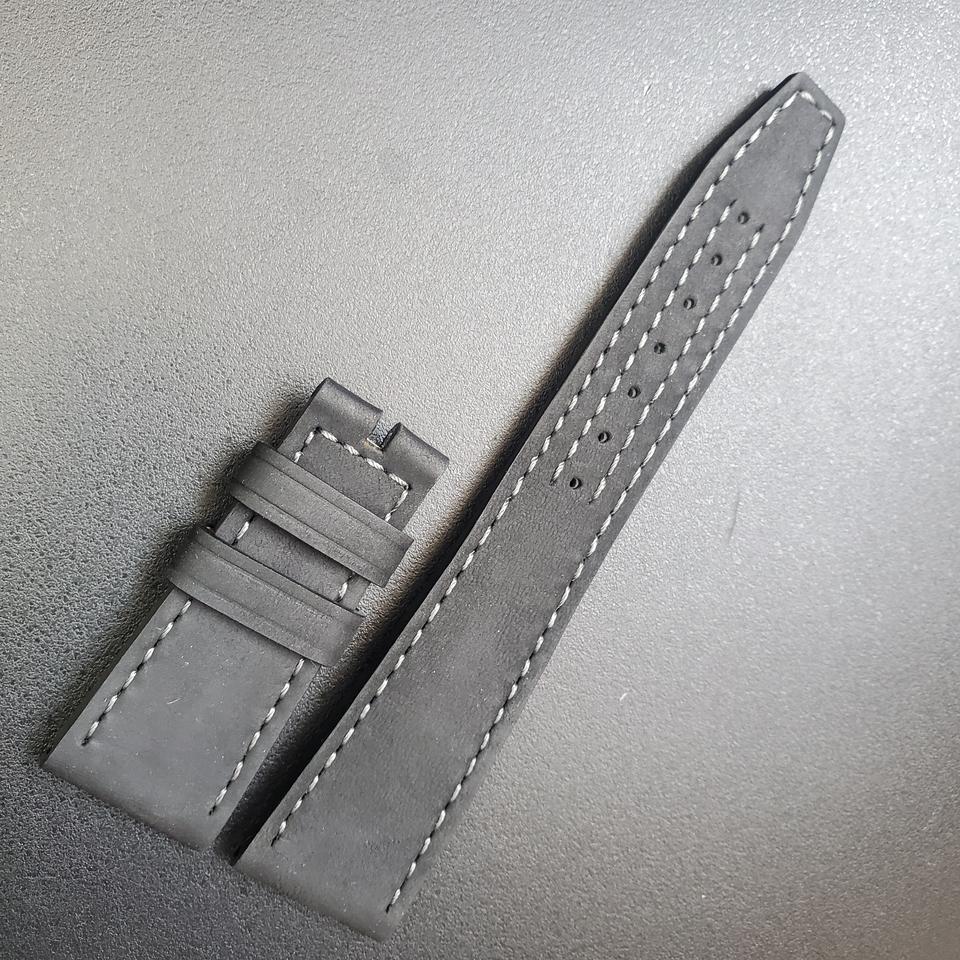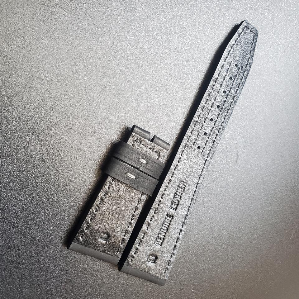 สายรัดข้อมือหมิงฮัง LS301 22มม. สีดำอิตาเลี่ยนหนังลูกวัวหนังลูกวัวสีแทนพืชผักสายรัดข้อมือ18มม.