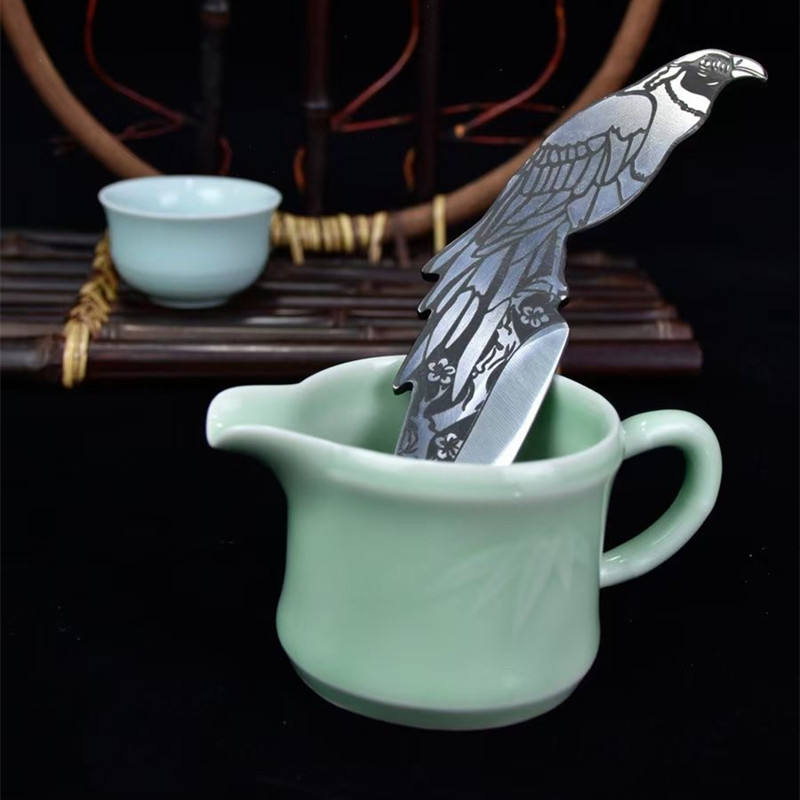 จีน Longquan ปลอมแปลงกุ้งฟูอุปกรณ์พิธีชงชาใบมีดชานกแก้วสแตนเลส