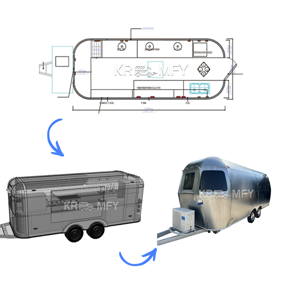 รถเทรลเลอร์อาหารสุดหรูแบบพกพาขนาดใหญ่รถขายอาหารพร้อมห้องครัวเต็มรูปแบบ