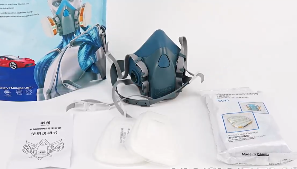 หน้ากากป้องกันสำหรับงานพ่นสีรถยนต์ ซิลิโคนเหลวคุณภาพสูง MinPar 8900 ผลิตในจีน สวมใส่สบาย