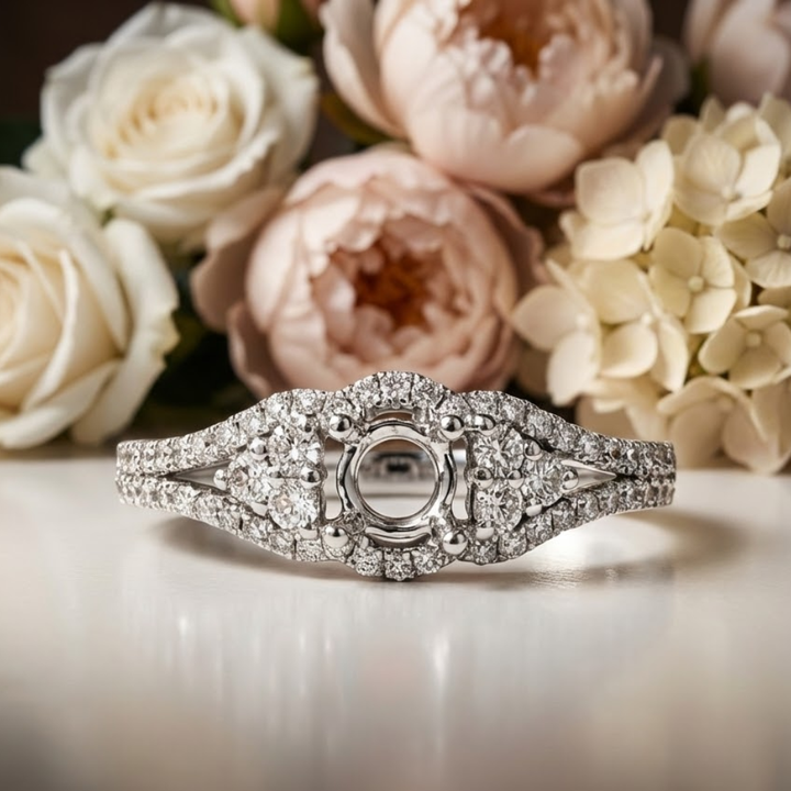 แหวนเพชรแท้18K สำหรับผู้หญิงแหวนเพชรแท้ทรงครึ่งวงกลมติดเพชรสีทอง18K คุณภาพสูง