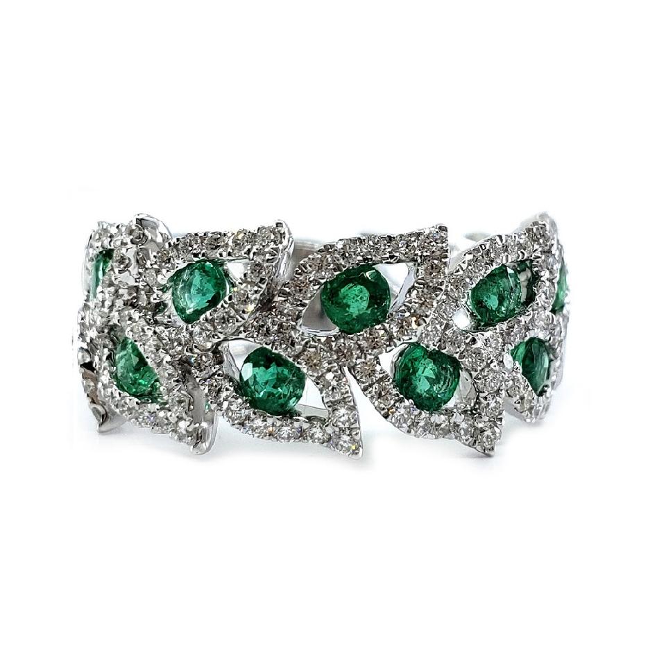 แหวนเพชรกลมและมรกตสีทองแท้18K สำหรับสุภาพสตรีเครื่องประดับจากผู้ผลิตจีน