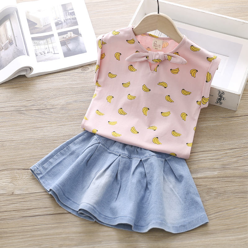 ชุดเสื้อผ้าเด็กผู้หญิงหน้าร้อน ตลาดจีน ชุดเดรสยีนส์ลายดอกไม้สำหรับเด็กผู้หญิง
