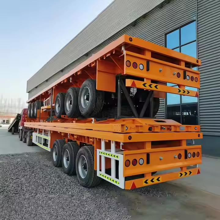 รถพ่วงพื้นเรียบบรรทุกสินค้าขนาด 20 ฟุต 40 ฟุต 45 ฟุต แบบ 2 เพลา 3 เพลา 4 เพลา จากจีน ขายดี