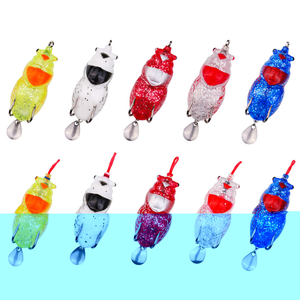 เหยื่อตกปลารูปกบจากจีน แบบท็อปวอเตอร์ กันติดวัชพืช สำหรับปลาช่อน ทำจากพลาสติกนิ่ม, เหยื่อตกปลา กบกระโดด