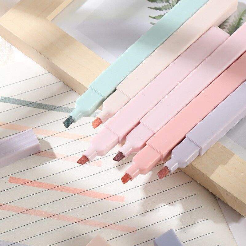 ปากกาเน้นข้อความพลาสติกราคาถูกแบบกำหนดเองจากจีน หัวเฉียง รูปทรงสี่เหลี่ยมผืนผ้า สีพาสเทลมาการอง ชุดปากกาเน้นข้อความ