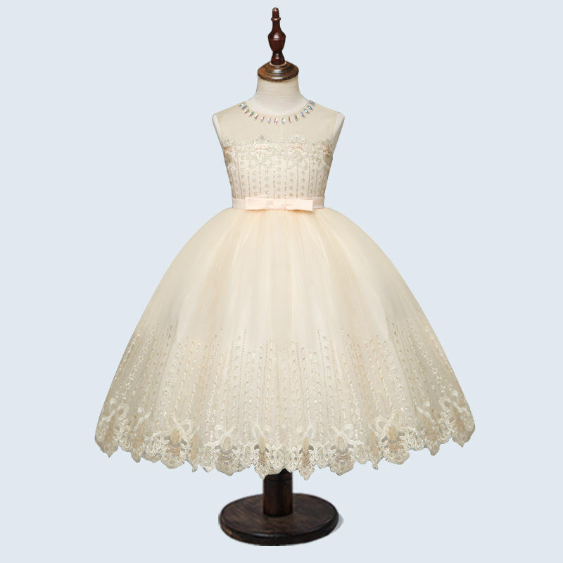 ชุดเดรสเด็กผู้หญิงลายลูกไม้ระบายโบว์ประดับคริสตัลดีไซน์วินเทจสำหรับการช้อปปิ้งออนไลน์จากจีน