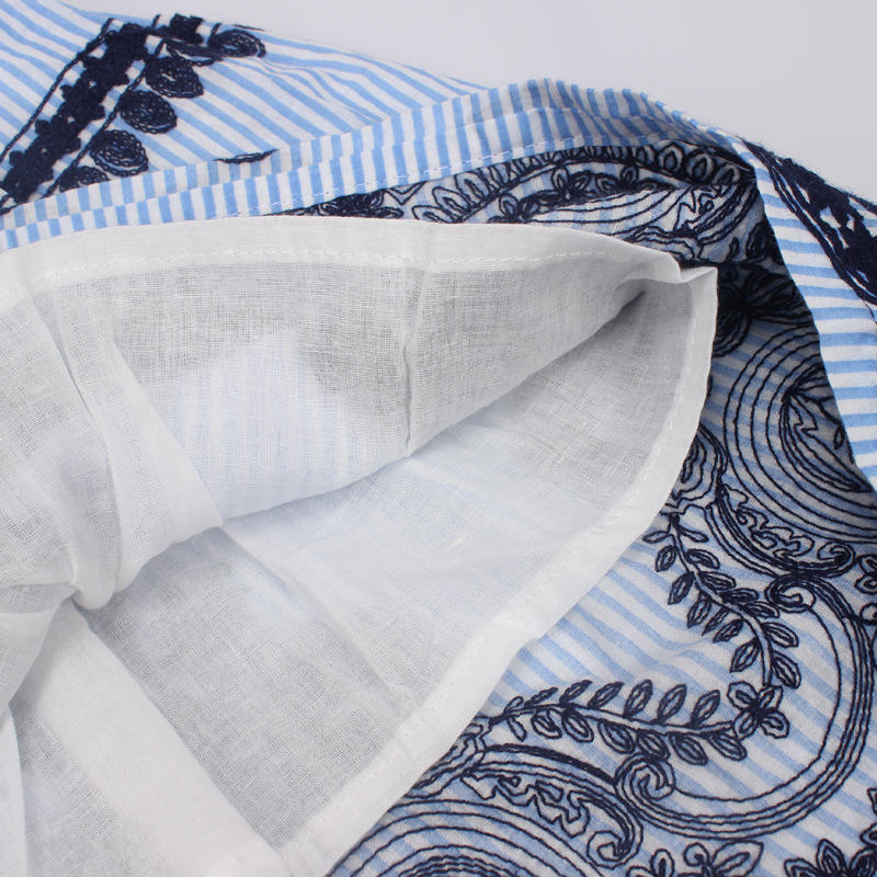 ชื่อสินค้า:ชุดเดรสเด็กผู้หญิง เสื้อเชิ้ตลายทาง ปักฉลุ