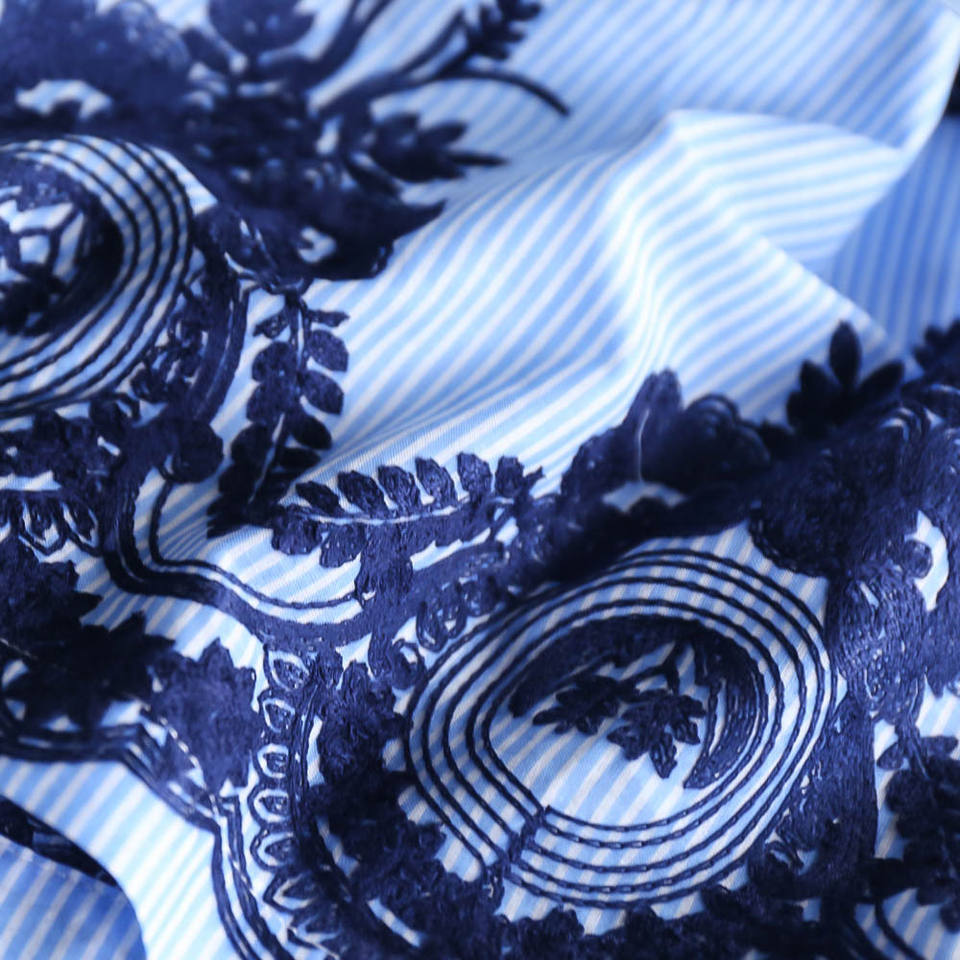 ชุดเดรสเด็กผู้หญิง เสื้อเชิ้ตลายทาง ปักฉลุ