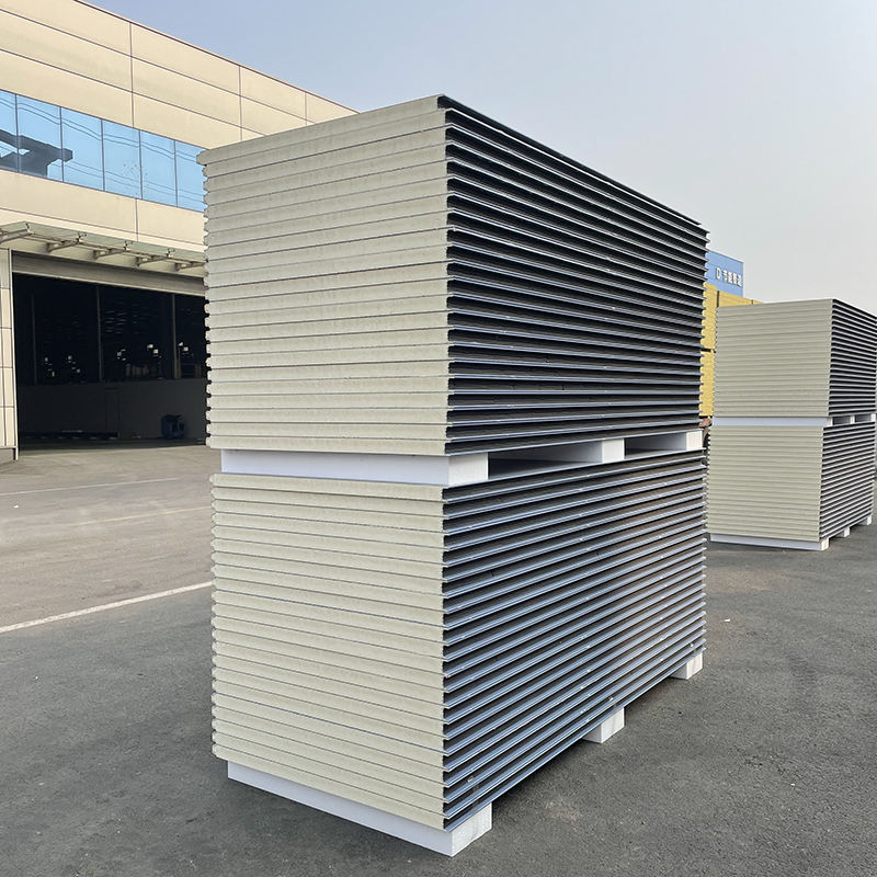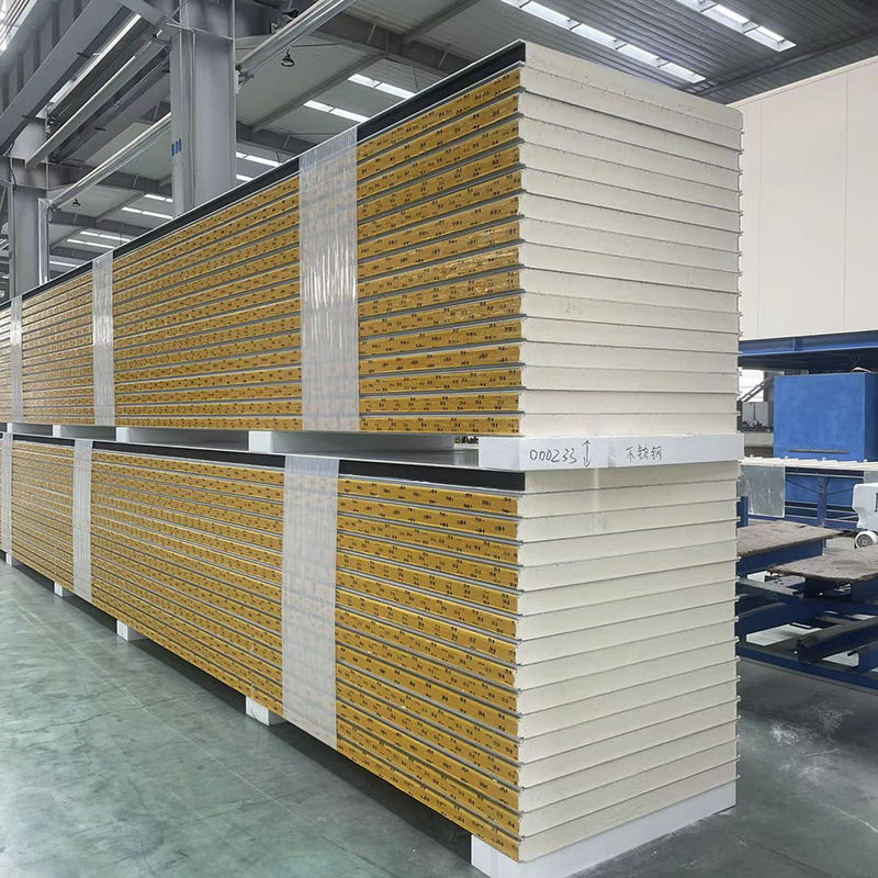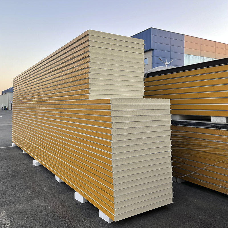 แผ่นผนังแซนวิชโพลียูรีเทนจีน 50 มม. 100 มม. 150 มม. 200 มม. PU PIR EPS ร็อควูล แผ่นผนังแซนวิชสำหรับผนังคลังสินค้า