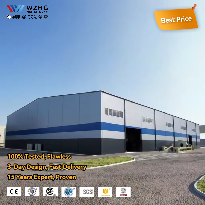 โกดังโครงสร้างเหล็กสำเร็จรูปน้ำหนักเบาจากจีน สำหรับโรงงาน/อุปกรณ์ คอลัมน์กลาง ใช้งานกลางแจ้ง อายุการใช้งาน 50 ปี ทนลมแรง