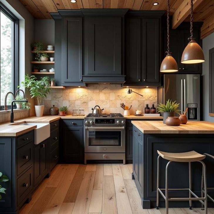 ตู้ในครัวแบบเขย่าสีดำเฟอร์นิเจอร์กระดานไม้เนื้อแข็งธรรมชาติคุณภาพพรีเมี่ยมจากจีน