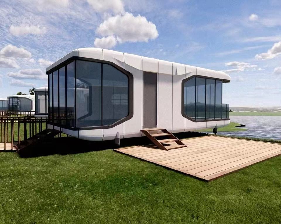 บ้านแคปซูลพร้อมห้องครัวแบบสองชั้นตู้คอนเทนเนอร์แบบแยกส่วนพื้นที่ผู้ลี้ภัยแบบพกพา